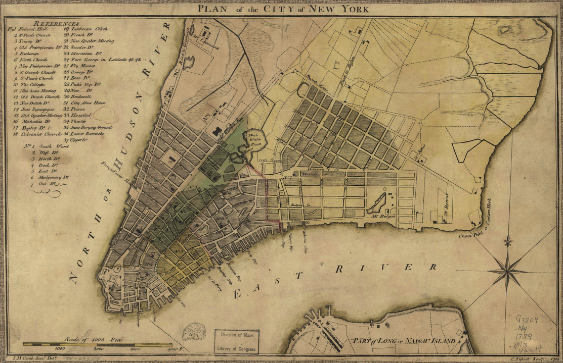 Great George Street was the name Broadway, north of the City Hall Park, was known by in 1791.