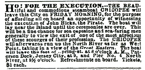 “Ho! For the Execution.” July 12, 1860. Classified advertisement. New York Times:7